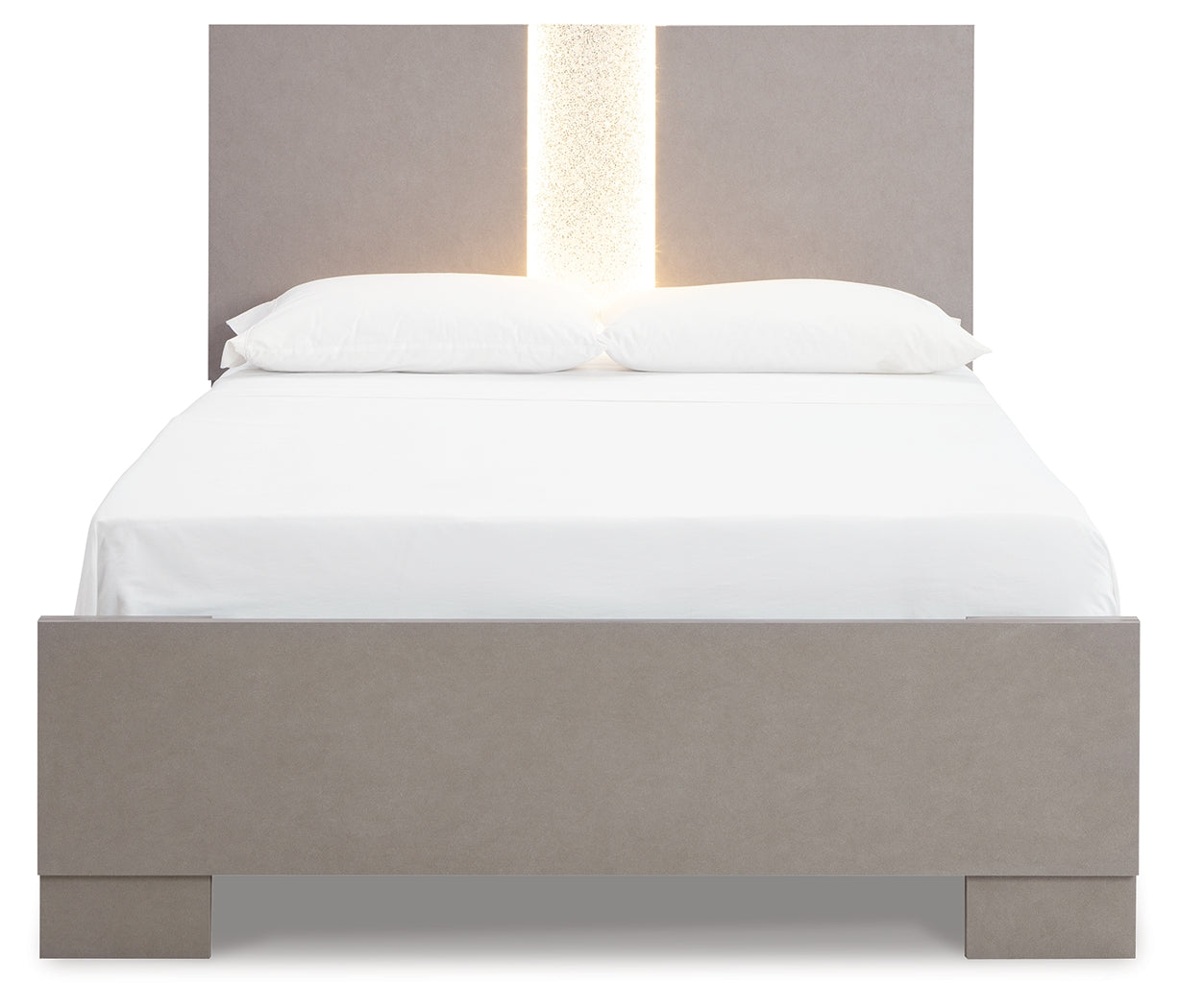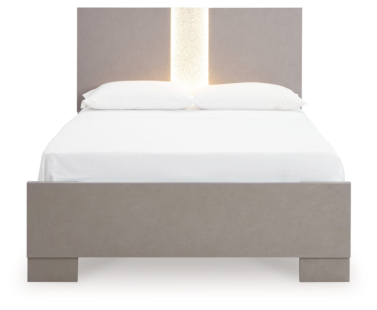 Love sleek and bold contemporary style? Drink in the beauty of this queen panel bed. The piece's eye-catching details include a leather grain look, glam glitter accents and remote-controlled LED lighting. Combined with the streamlined aesthetic, it's a simply stunning way to achieve the bedroom of your dreams.