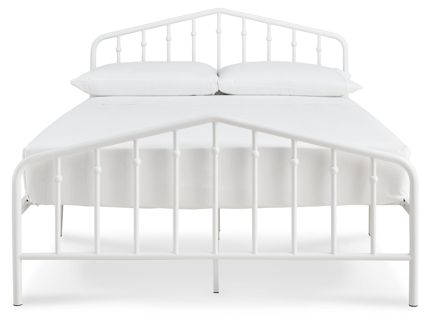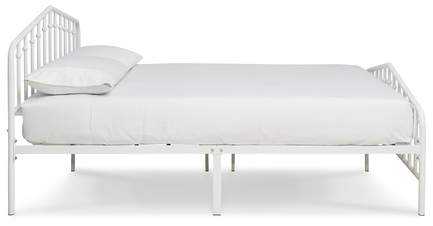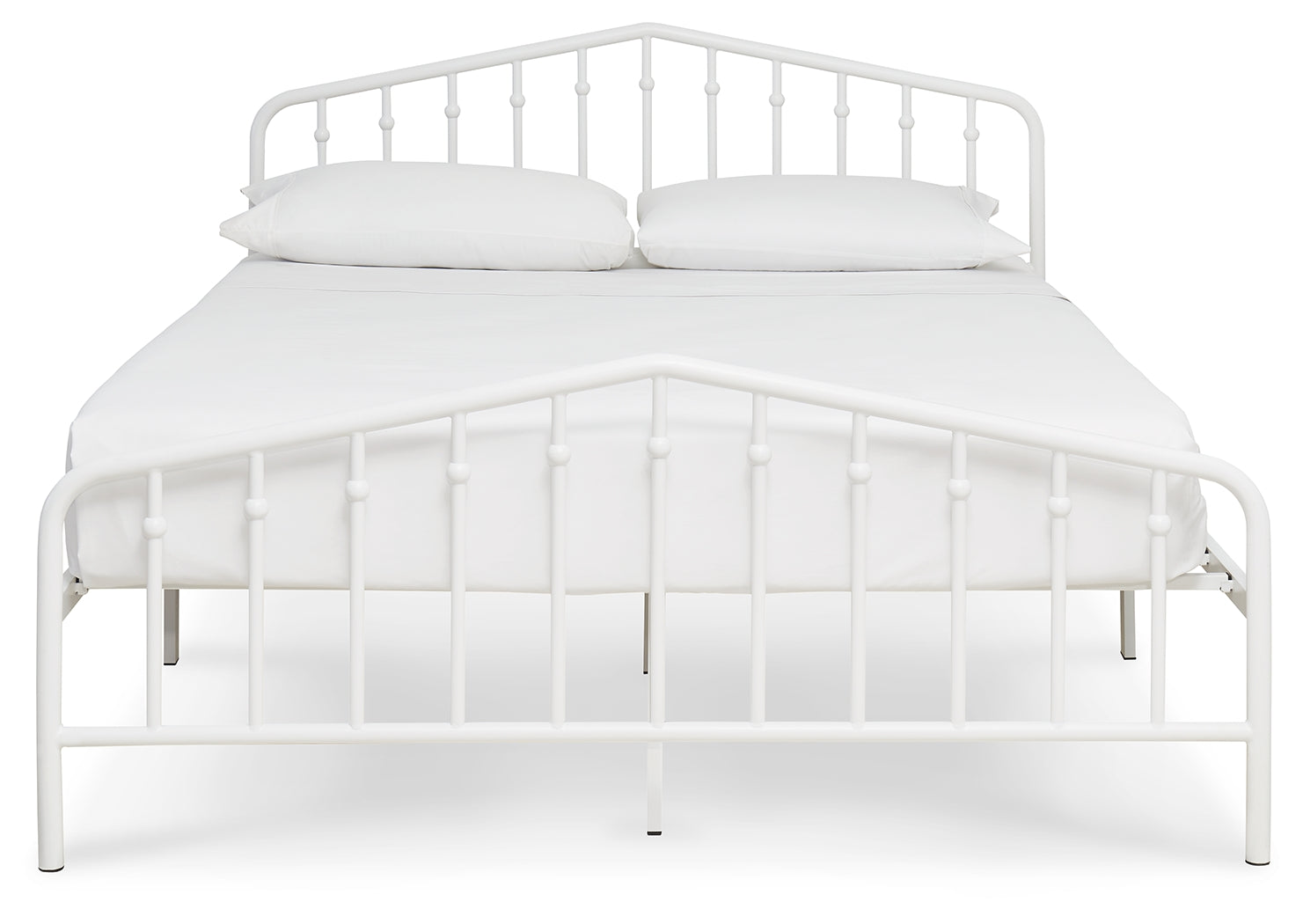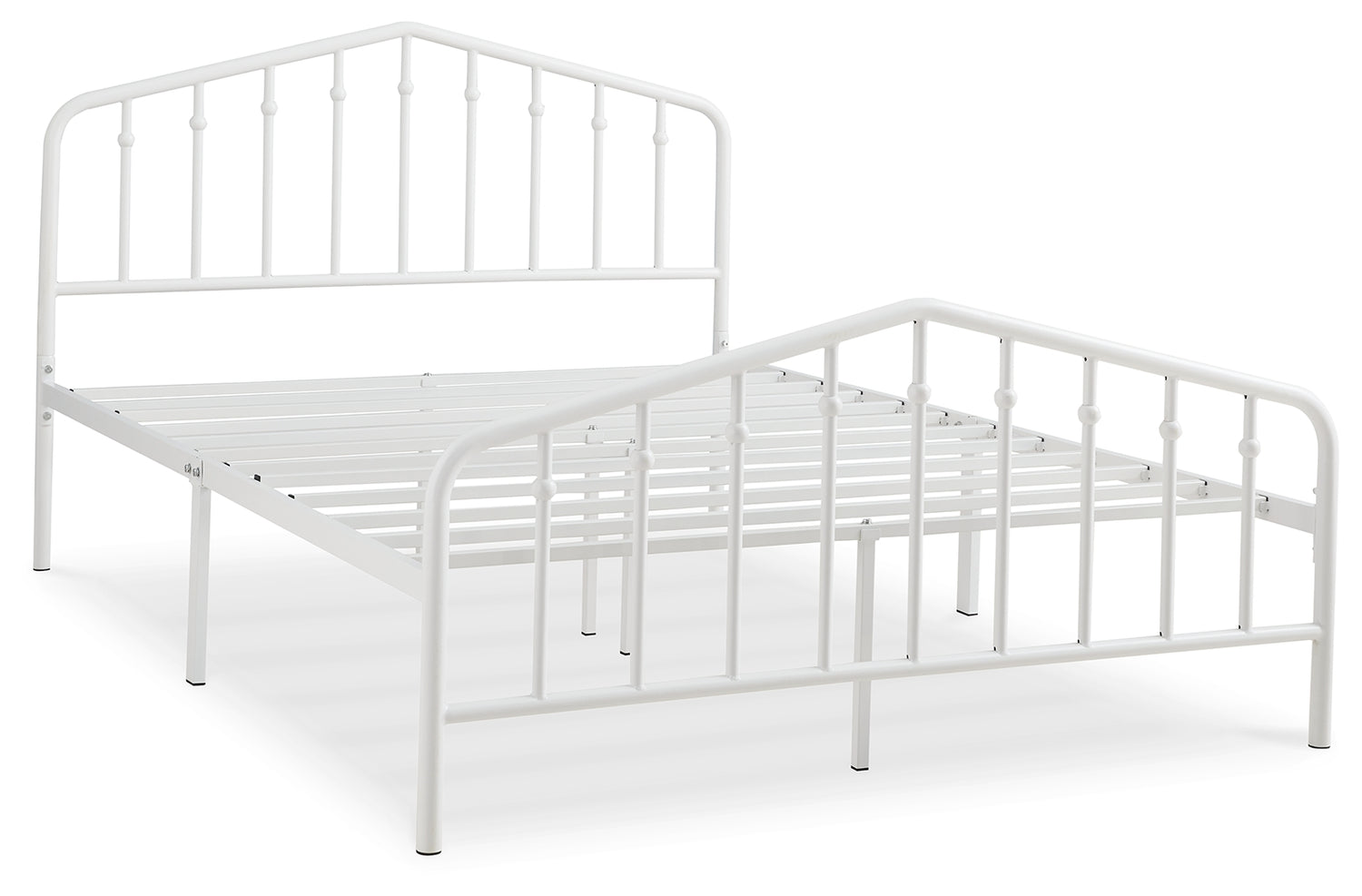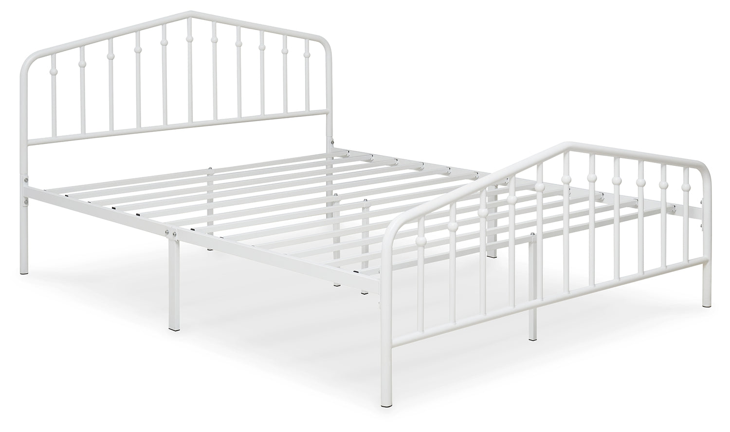 With a practical sense of beauty, this queen bed brings a subtle decorative element to your room with its white finish. Stylish spindles mounted on a gently arching top rail add visual interest without being too flashy. Bed setup is simple, with no additional foundation required.