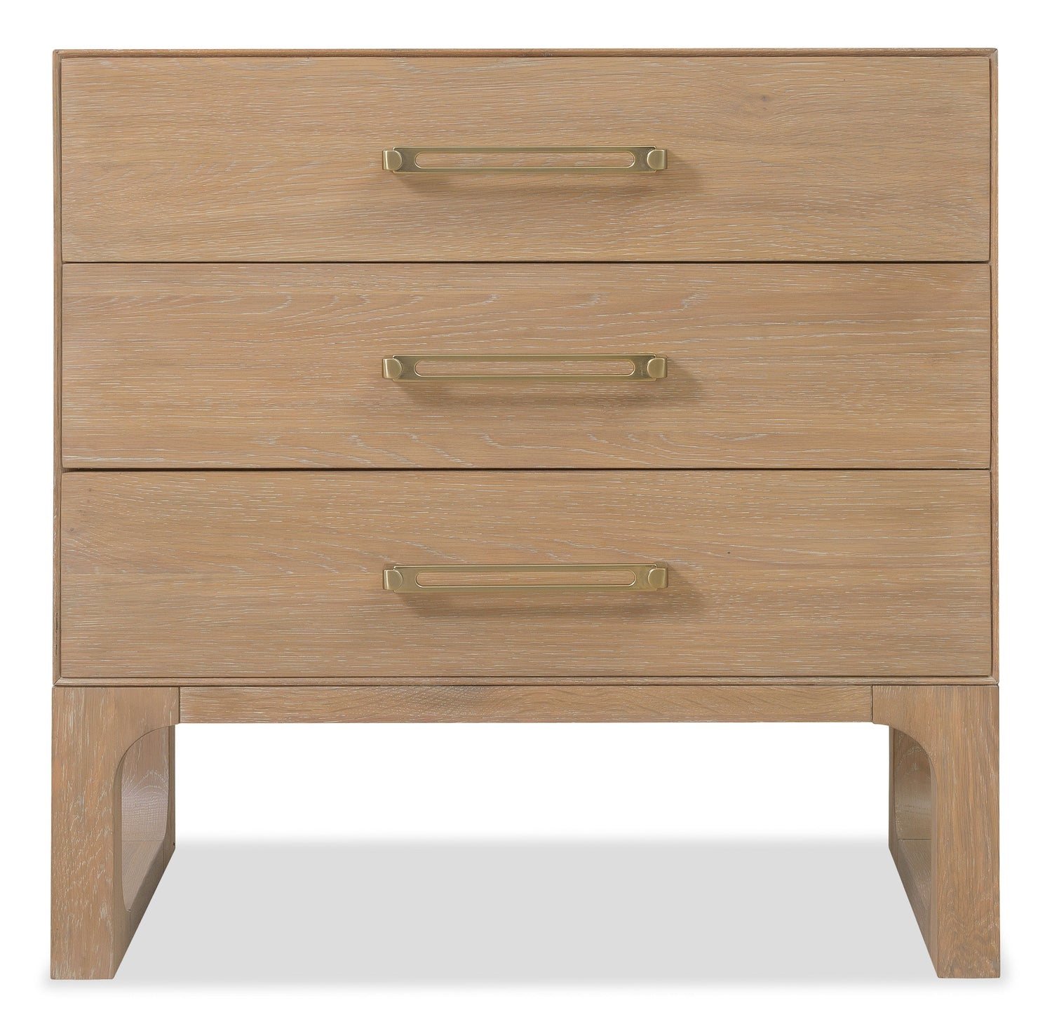 The Banyon Bay Nightstand brings functionality and style to your bedside. Constructed from oak solids and oak veneers with a finish, it features wire-brushing and cerusing for a textured appearance. The stainless steel bar hardware adds a modern touch. With spacious drawers, an integrated charging station, and a USB port, this nightstand is both practical and stylish. It is the perfect companion for contemporary bedrooms, blending sleek design with natural materials.