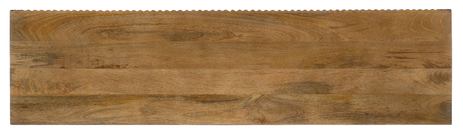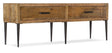 - Medium natural wood finish. Transparent finishes reveal a higher degree of color and grain variances, creating an irresistible one-of-a-kind silhouette. Textured metal legs and bar pulls in a charcoal finish.