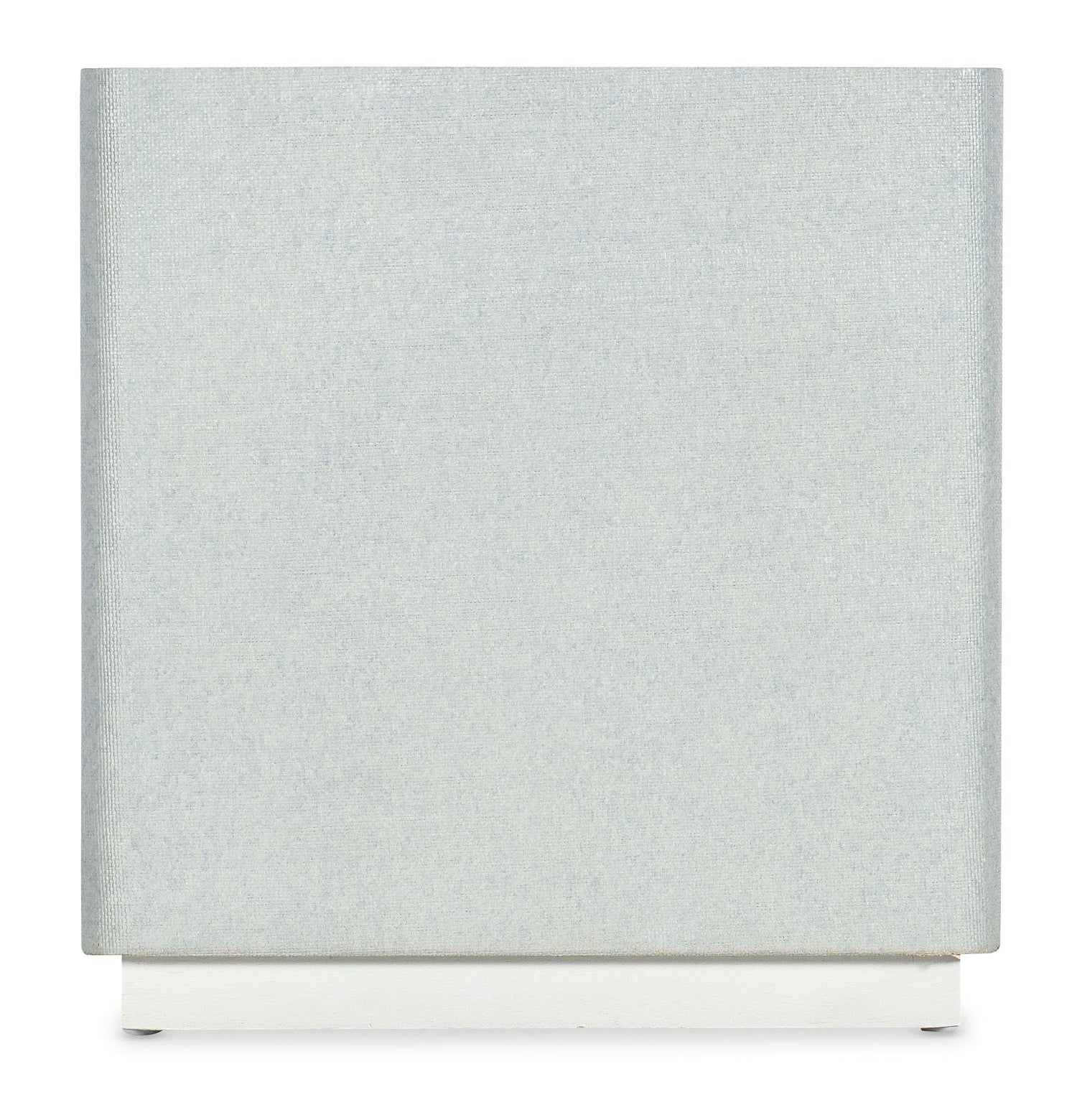 Serene and stylish with a spa-like color scheme, the modern rectangle-shaped Atlantis End Table has rounded corners, a painted tempered glass top, raffia-wrapped exterior and white plinth base. The top is painted in a creamy white, and the raffia wrap is in a pale blue tone inspired by Caribbean beaches.