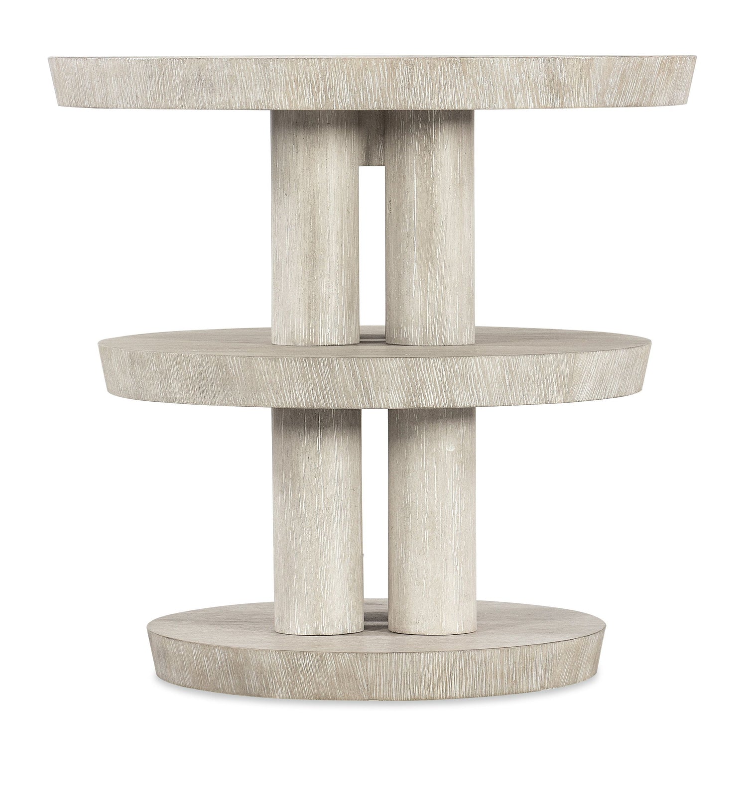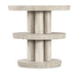 With a casual, natural, almost primitive look, the Modern Mood Round Side Table is a three-tiered design with three round columns as the base. Crafted of Oak Veneers with wire-brush detailing for a tactile appeal, the table features the Diamond Finish with crystal-like alabaster and pewter hues, delivering a soft sophistication.