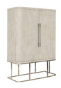 Architectural and timeless with a luxe mixture of materials, the Modern Mood Wardrobe is a statement piece. The shaped metal base gives the cabinet a floating appearance. Crafted with Oak Veneers, the wardrobe is finished in a serene Diamond color and has two large wood doors with piano hinges and mirror glass on the back of the right-side door. Behind the right-side doors are two adjustable shelves. Features include six self-closing drawers, a removable clothing rod and jewelry storage behind the left-side doors that includes 26 hooks, three felt-lined trays and one removable drop-in jewelry tray with four padded rows for rings.