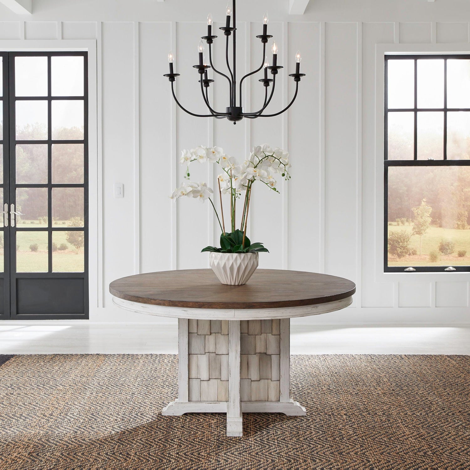 River Place - Pedestal Table Set - White is backordered and will ship as soon as it is back in stock.