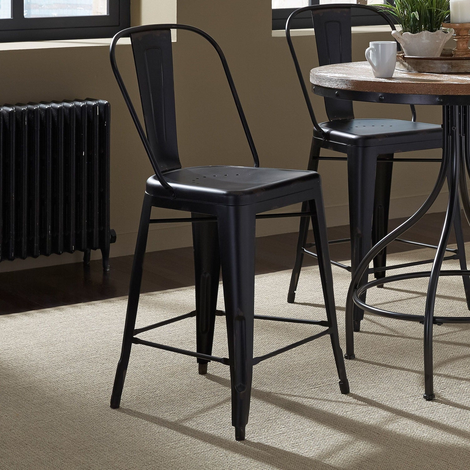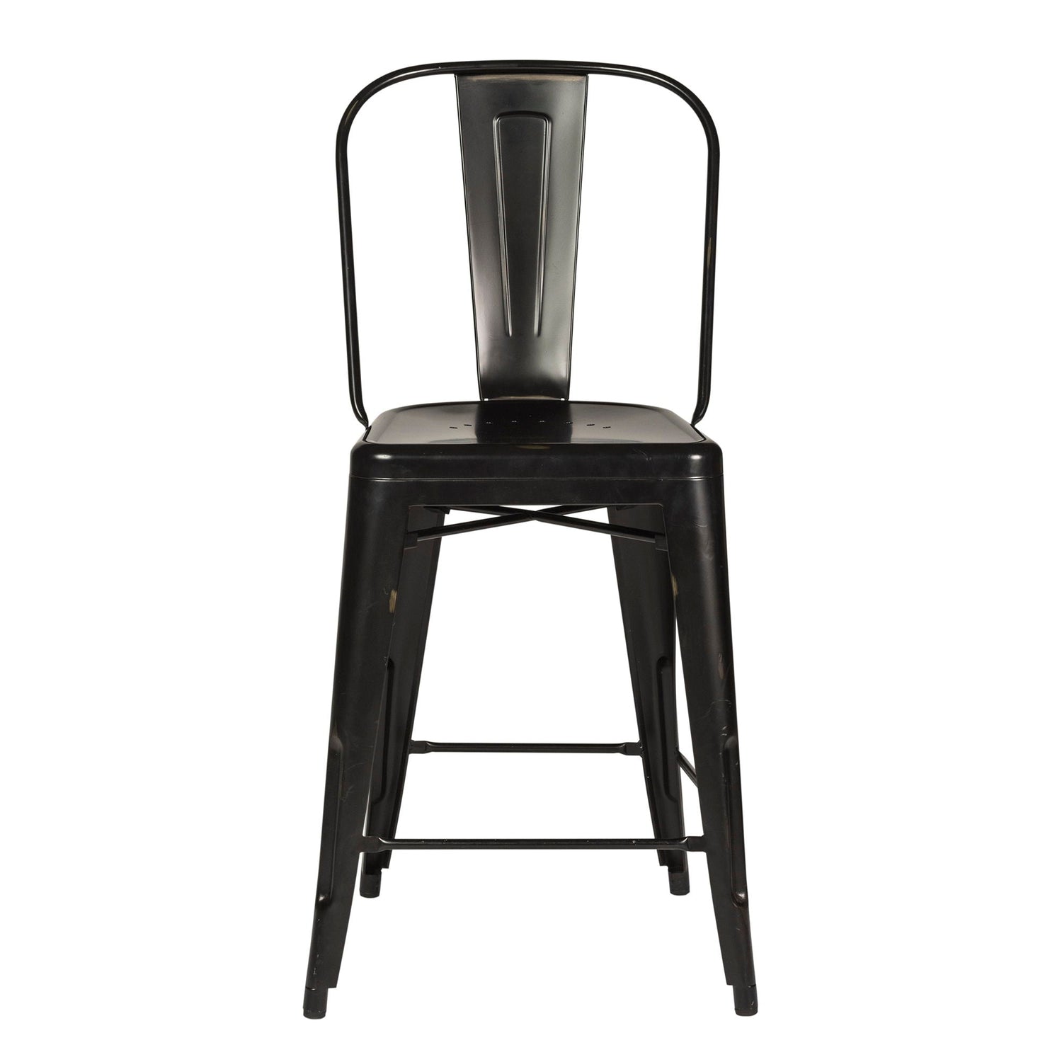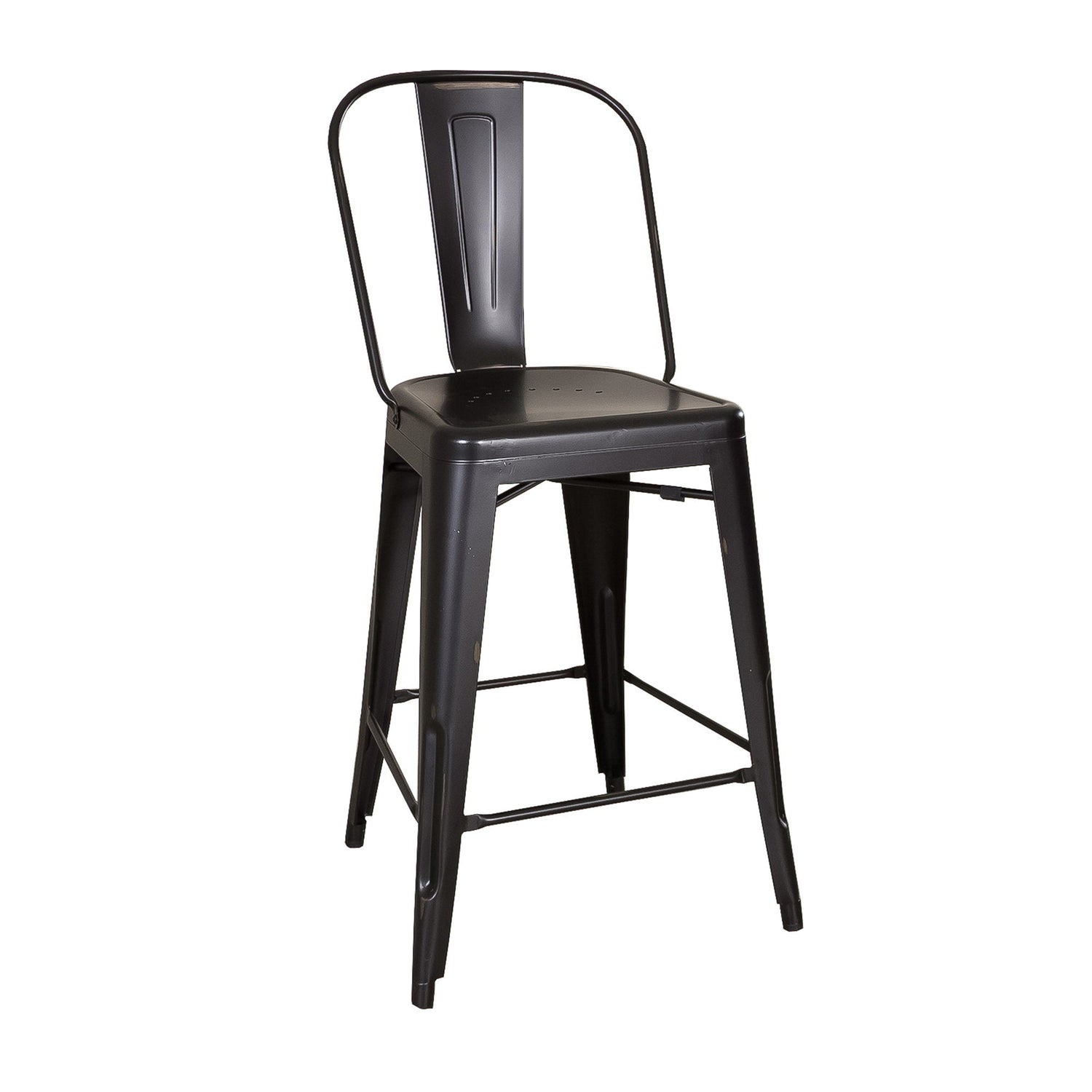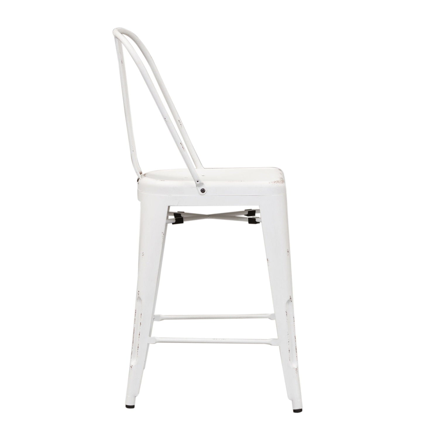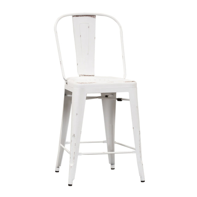 Indulge in classic vintage styling and industrial feel with the Vintage Series bow back counter chair. Crafted of metal, this piece features multiple finish options and heavy distressing. Distressed metal finishing accompanied by colors that can mix and match offer a unique designer look.