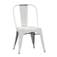Indulge in classic vintage styling and industrial feel with the Vintage Series bow back side chair. Crafted of metal, this piece features multiple finish options and heavy distressing. Distressed metal finishing accompanied by colors that can mix and match offer a unique designer look.
