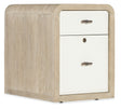 - Two-tone finish features elm veneers in a pebble hue with drawer fronts in a contrasting ivory with leathered texture