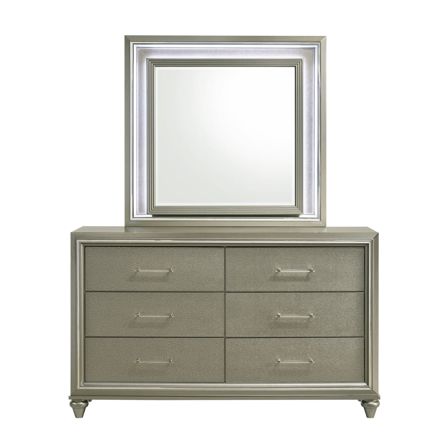 Experience the Lumina Mirror, a sturdy creation crafted from solid Rubberwood for enduring stability. Its sleek High Gloss gray finish accentuates the low distortion mirror glass, adding a touch of sophistication to any space. Illuminate your surroundings with the embedded LED lights, casting a luxurious glow that enhances the mirror's glamorous allure. Immerse yourself in elegance with the Lumina Mirror, a fusion of durability and opulence.