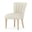- Chair is upholstered in a woven shimmery fabric with vertical channeling on the back