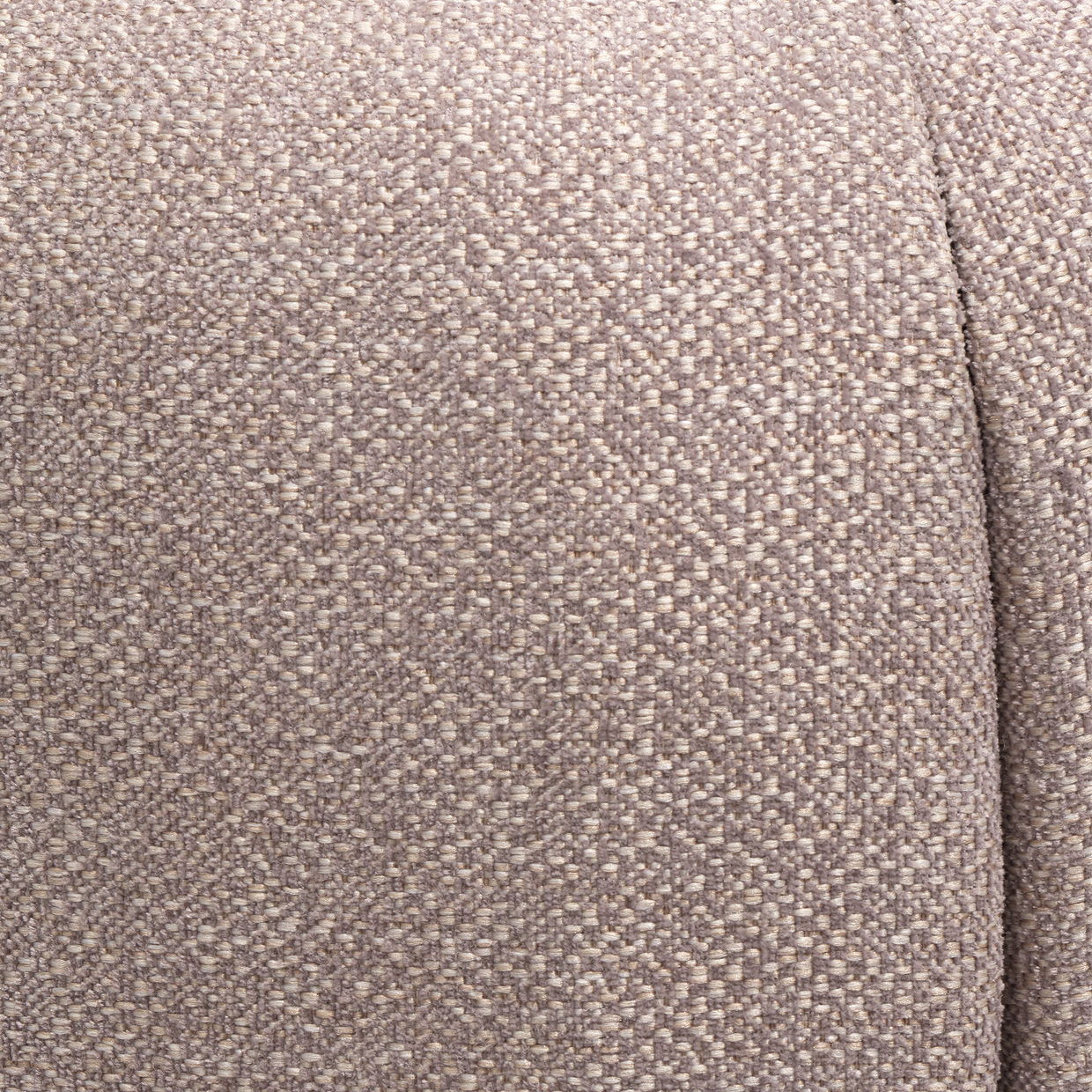 - Table is upholstered in tweed-like woven fabric in a tan nougat hue