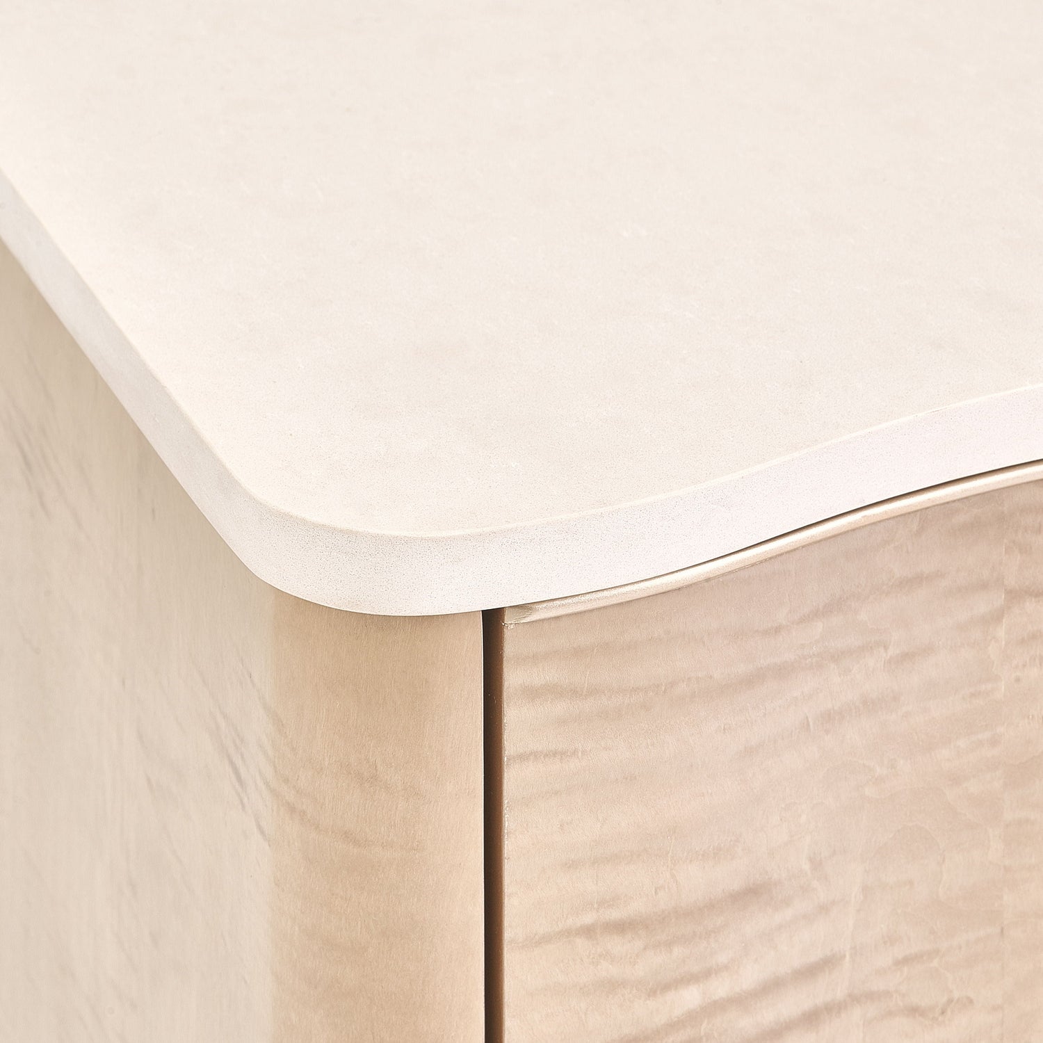 - Three velvet lined drawers with self-closing glides and curved waterfall pulls