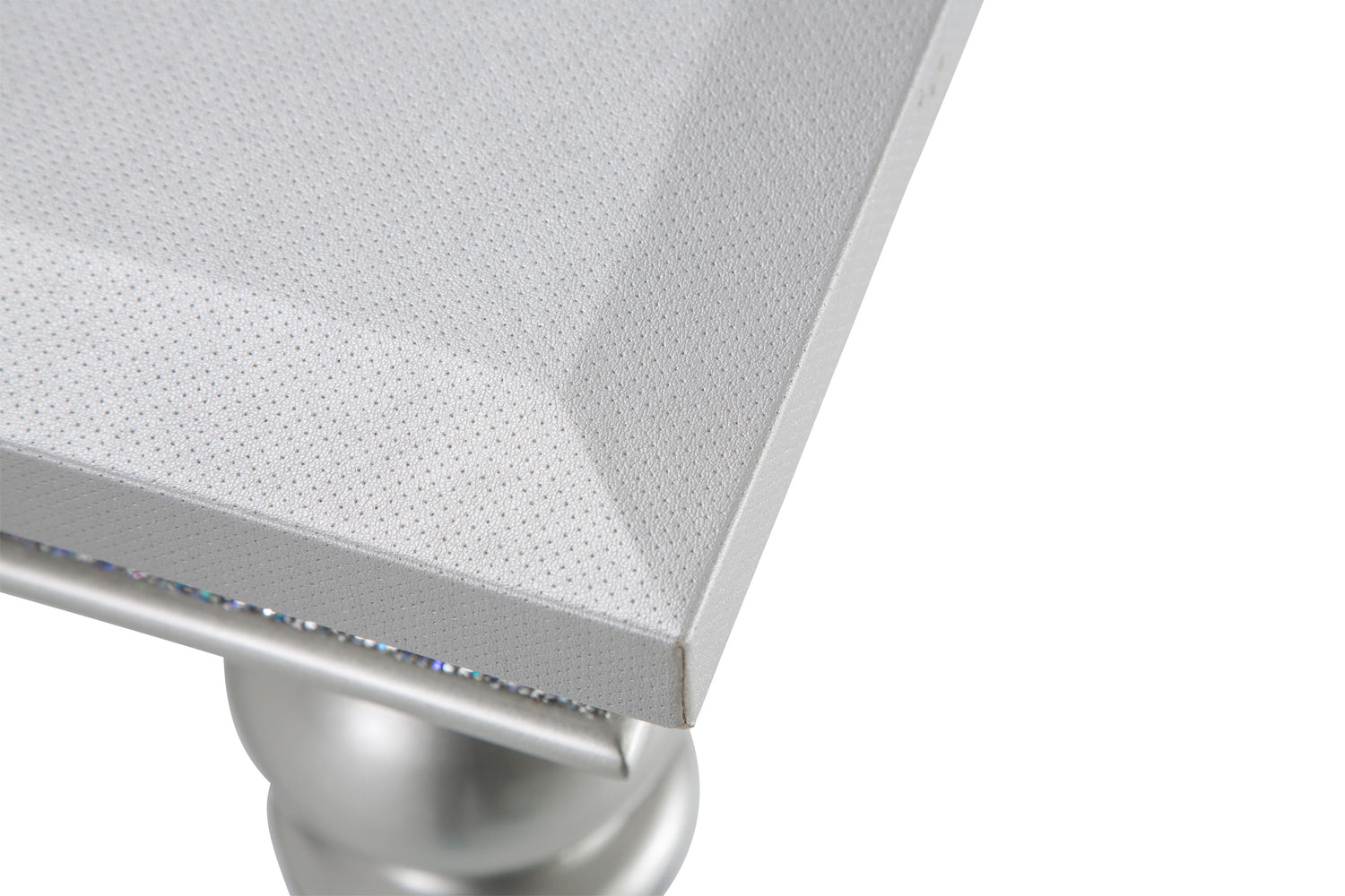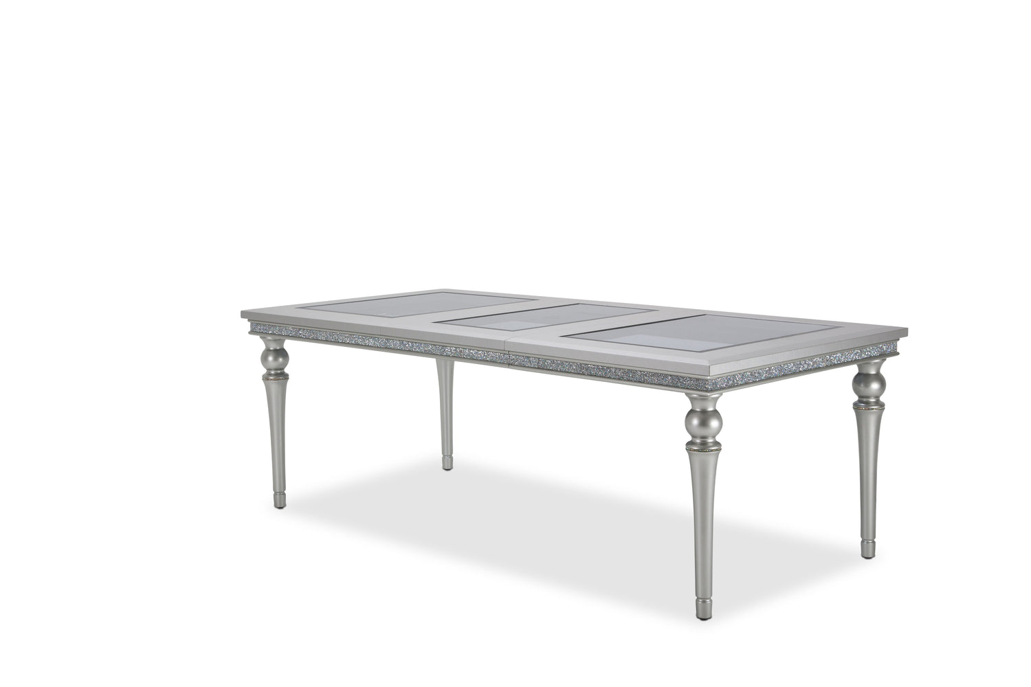 Dine like Royalty all year. With the Melrose Plaza Dining table, you'll look forward to hosting parties and setting the table for lunch. Elegant and Glam, you can easily elevate your dining room with sleek, platinum finished legs, a crystal encrusted apron, and vinyl table trim. Your home should be as unique as you.