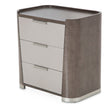 - Faux shagreen drawer fronts in a Frost Gray finish