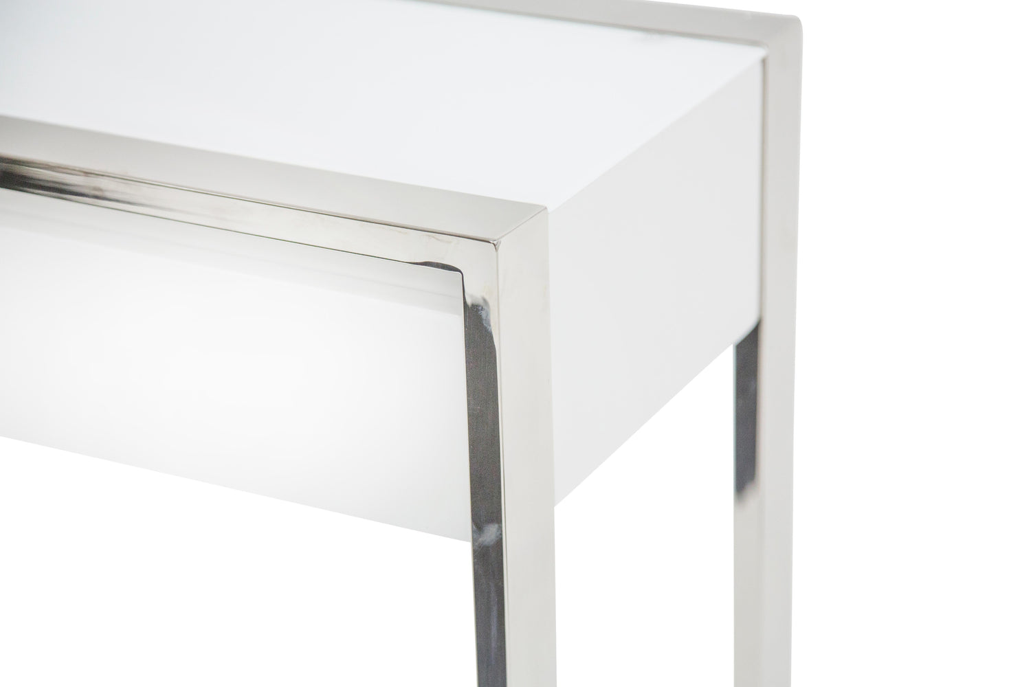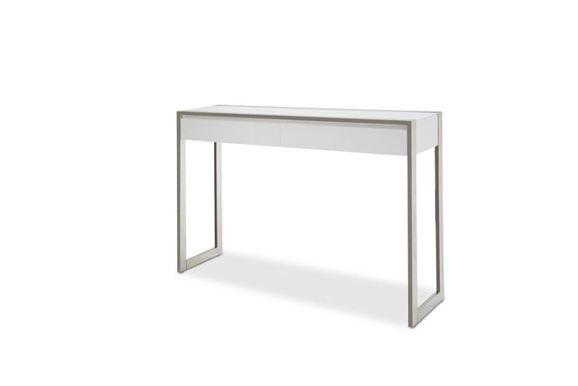 Store, display and style. This State St. 2-Drawer Console Table brings a clean contemporary style and polished function to your home. With a subtle waterfall edge to match our State St. Writing Desk, this piece goes perfectly behind your contemporary sofa, lining your hallway, or welcoming guests in your entryway. Personalize with your favorite art and photos, and keep your belongings handy in the two easy-to-access drawers.