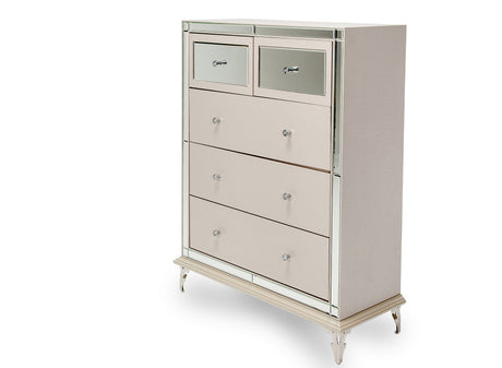 Hollywood Loft - Upholstered 5-Drawer Chest - Frost