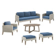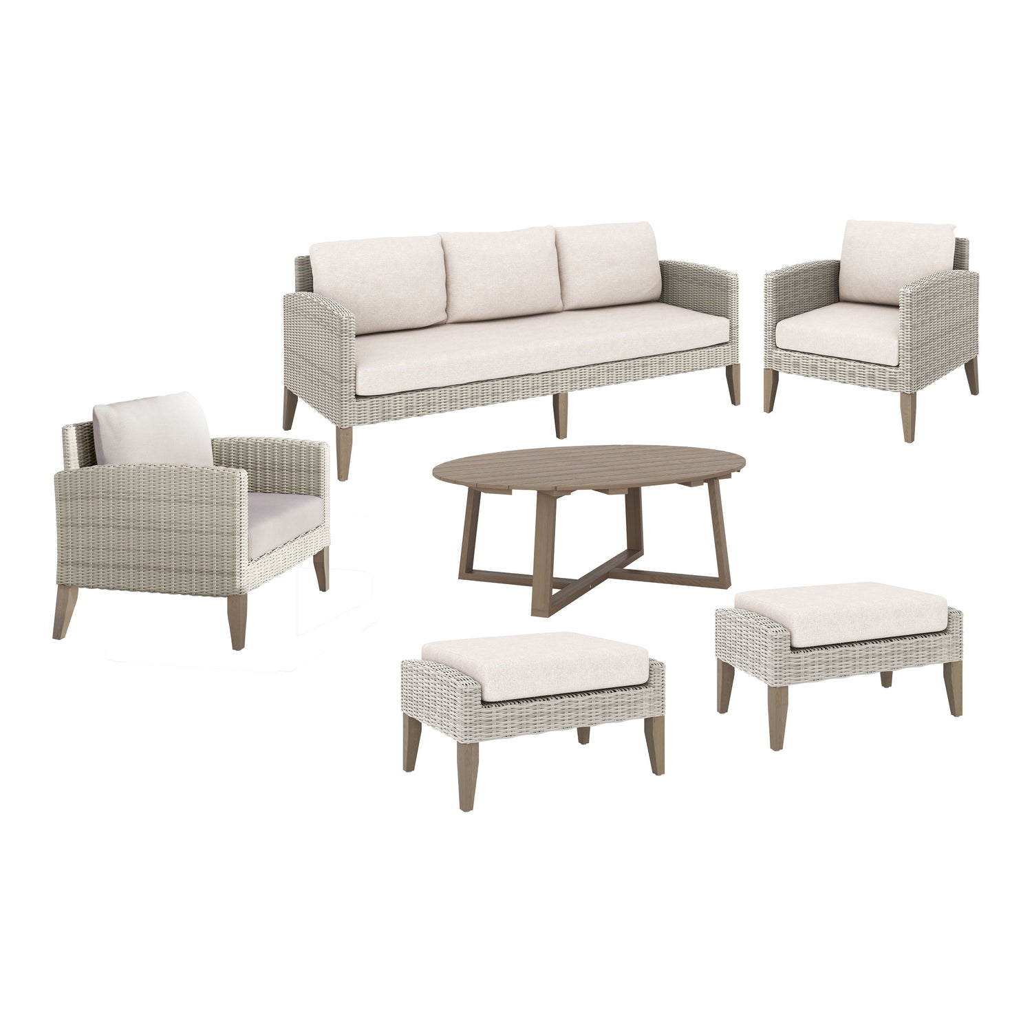 Introducing the Carezza Outdoor Collection, where durability meets comfort in a seamless blend of style and functionality. Crafted with precision using FSC Certified Acacia solid wood, weather-resistant wicker, and aluminum frames, this collection stands the test of time, promising years of outdoor enjoyment. The color fast, weather-resistant fabric, made of solution dyed 100% Polyester, ensures vibrant hues that resist fading, mold, and moisture, keeping your furniture looking fresh season after season. Sink into the lap of luxury with the high-density, 12cm foam seat and back cushions, providing unparalleled comfort for hours of relaxation. With its relaxed transitional style, featuring light wicker and wood finishes complemented by soothing taupe fabric, this set effortlessly transforms your outdoor space into a casual, welcoming retreat. Assembly is a breeze, taking approximately 45 minutes to secure legs to all five pieces, with clear instructions provided for your convenience. Elevate your outdoor living experience with the Carezza Outdoor Collection, where every piece is meticulously designed for your comfort and enjoyment.