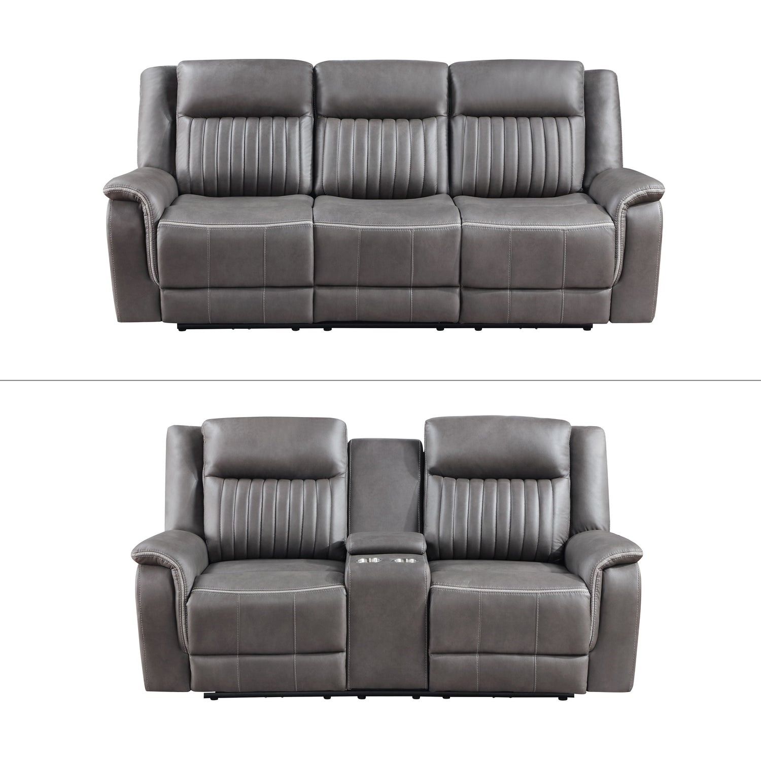 Meet the Enzo Motion Upholstery Collection, comprising a Reclining Sofa and Console Loveseat meticulously crafted for enduring comfort and style in your living space. With hardwood and manufactured wood frames, coil spring cushions wrapped in resilient foam and polyester, and no sag seat suspension, this collection ensures quality seating that promises years of enjoyment. Wrapped in a cozy suede soft 100% polyester fabric, it''s both easy to care for and inviting. The soft upholstery is adorned with distinctive white contrast stitching, inset cross stitch arm and seat trims, and a luxurious channel back, adding a touch of contemporary elegance to your home. Experience ultimate relaxation with fully upholstered chaise recliner footrests, perfect for unwinding after a long day. Plus, the loveseat''s center console provides convenient storage for remote controls and built-in cupholders for beverages, enhancing your lounging experience. Elevate your living room with the Enzo Collection and indulge in unparalleled comfort and convenience.