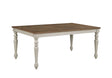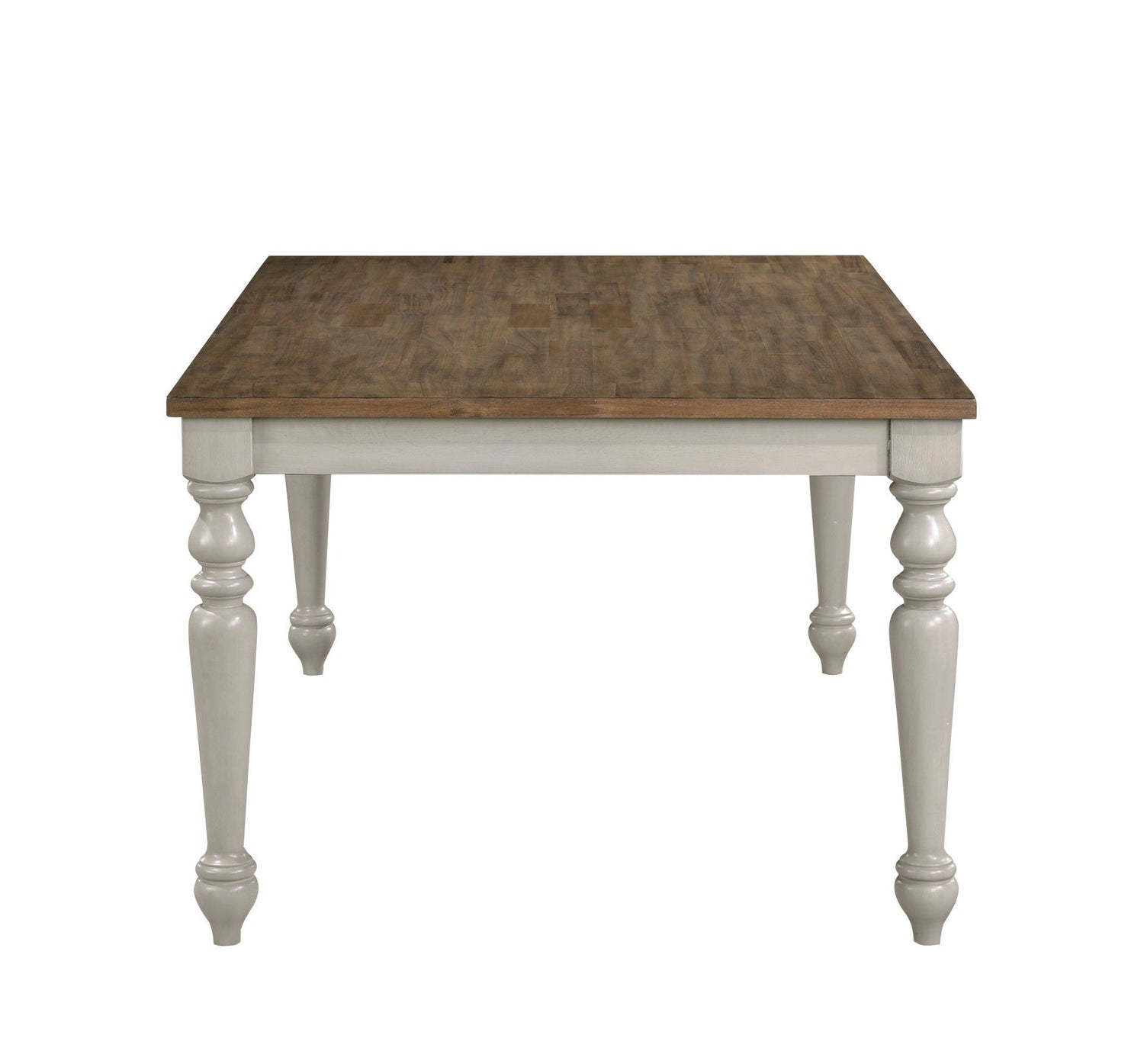 - Timeless Farmhouse Elegance: The soft, distressed two-tone finish exudes a vintage farmhouse appeal, where the rich, natural wood tabletop pairs harmoniously with the cream-colored, weathered base and legs. This expertly curated blend of textures and tones creates a welcoming ambiance, perfect for elevating any traditional or cottage-inspired dining space into a cozy, inviting retreat.