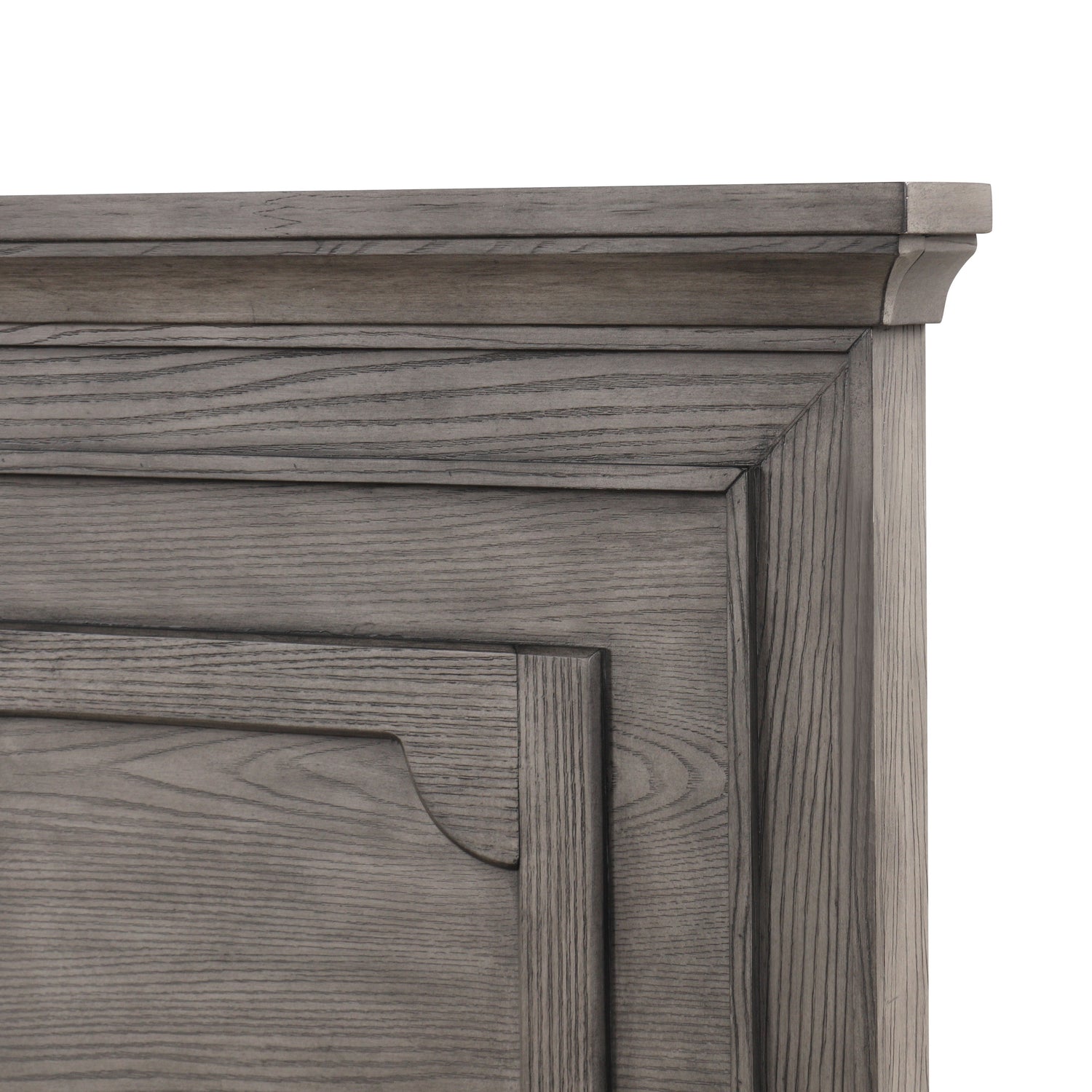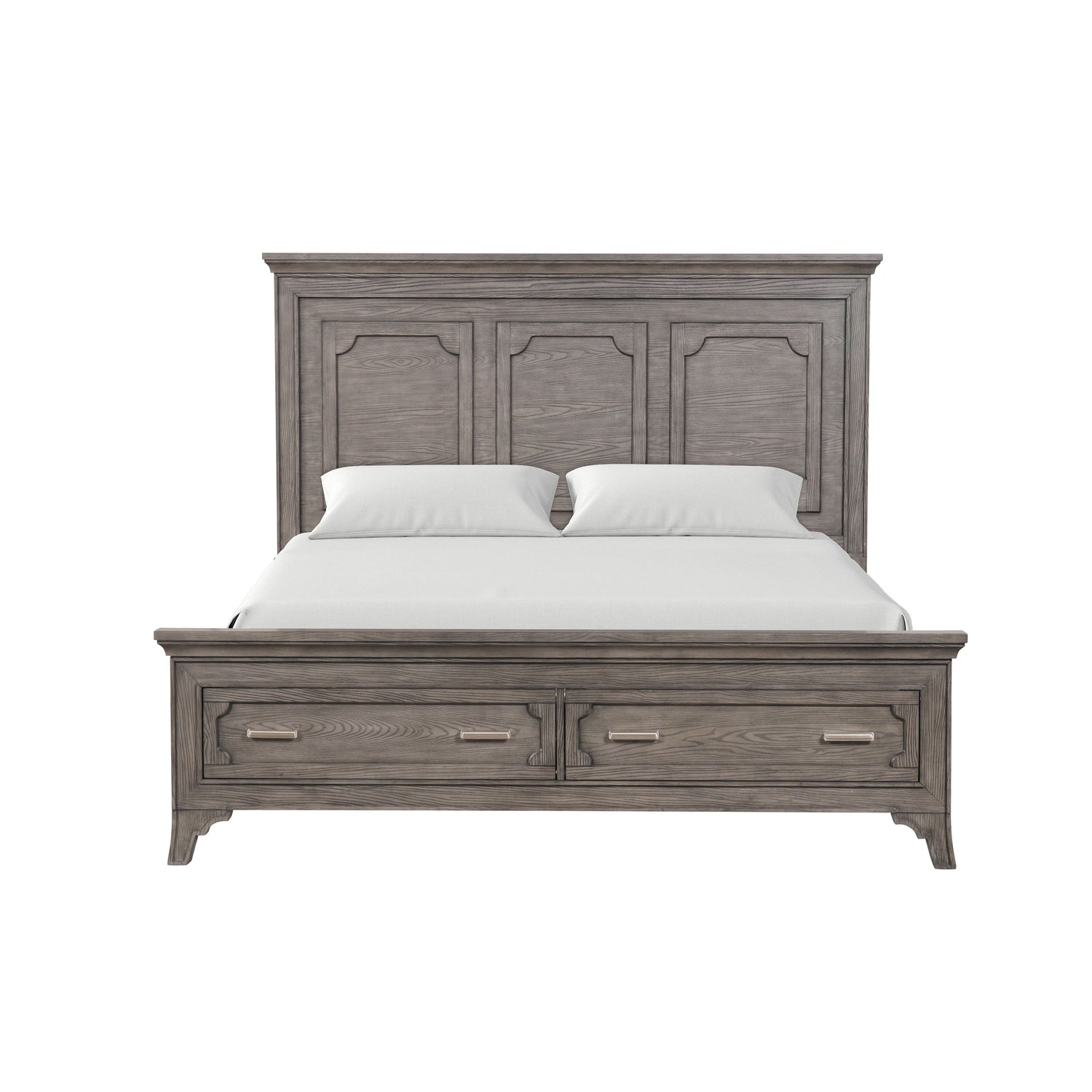 Transform your bedroom into a haven of sophistication with the Lisbon Bed. Crafted from Acacia solid wood and eco-friendly embossed oak laminate, this bed boasts enduring strength and durability. Its multi-step gray finish enhances the natural beauty of the wood, infusing your space with an elegant ambiance. The stately headboard is paired with a functional storage footboard, providing a convenient solution for linens. Evoking a traditional charm with bracket feet and picture frame moldings, this bed receives a modern twist with brushed pewter hardware and a contemporary gray finish.