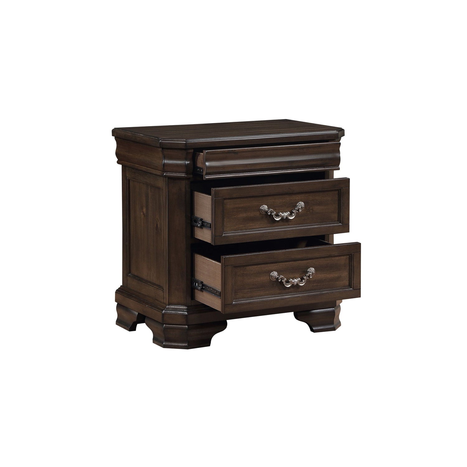 Introducing the Lyndhurst Nightstand — an essential piece for any bedroom sanctuary. Crafted from solid Acacia, Acacia veneers, and manufactured wood, this nightstand ensures lasting durability. Its heirloom finish, achieved through meticulous distressing, burnishing, and glazing, enhances the wood's natural beauty. Substantial moldings, bracket feet, and ornate hardware define its masterful style, making it a statement piece in any space. Inside, drawers are crafted with English dovetail joinery, full extension drawer glides, and finished interiors, with velvet-lined top drawer to protect delicate items. Experience modern convenience with the two-drawer design, equipped with a USBC charging station to keep your devices running smoothly. Plus, a discreet velvet-lined compartment hides behind the molding, providing additional storage for jewelry. Elevate your bedroom decor with the timeless elegance and functionality of the Lyndhurst Nightstand.