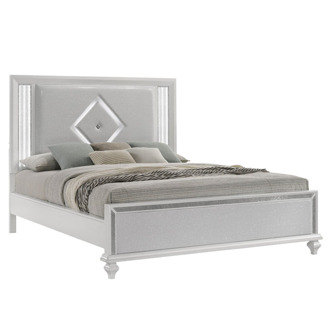 Experience the allure of the Stardust Bed, a masterpiece of modern luxury for your bedroom sanctuary. Crafted with durability in mind, this bed boasts a strong and eco-friendly construction of manufactured wood with a sleek finish, adorned with glittery silver accents for a touch of glamour. The sparkling Poly/Cotton fabric exudes star-like luster, complemented by shimmering crystal hardware, while LED lighting sets the mood and illuminates its captivating style. With diamond style accents, silver mylar trims, and accent lighting, this bed is a bewitching addition to any indulgent bedroom decor, offering unparalleled sophistication and charm.