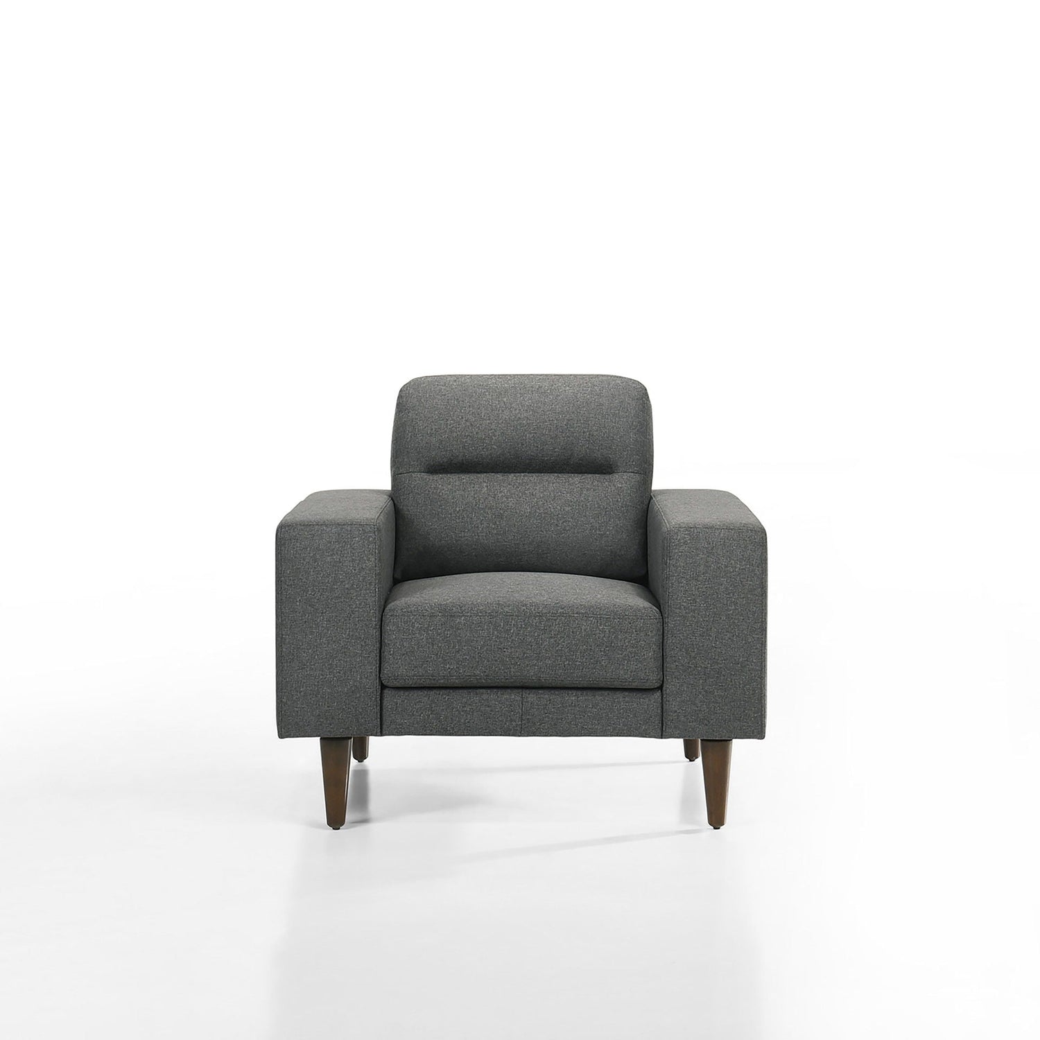 - Transitional Style: Extra wide track arms, tight back cushions with tailored center stitch and wood legs provide the versatile style for your living room chair.