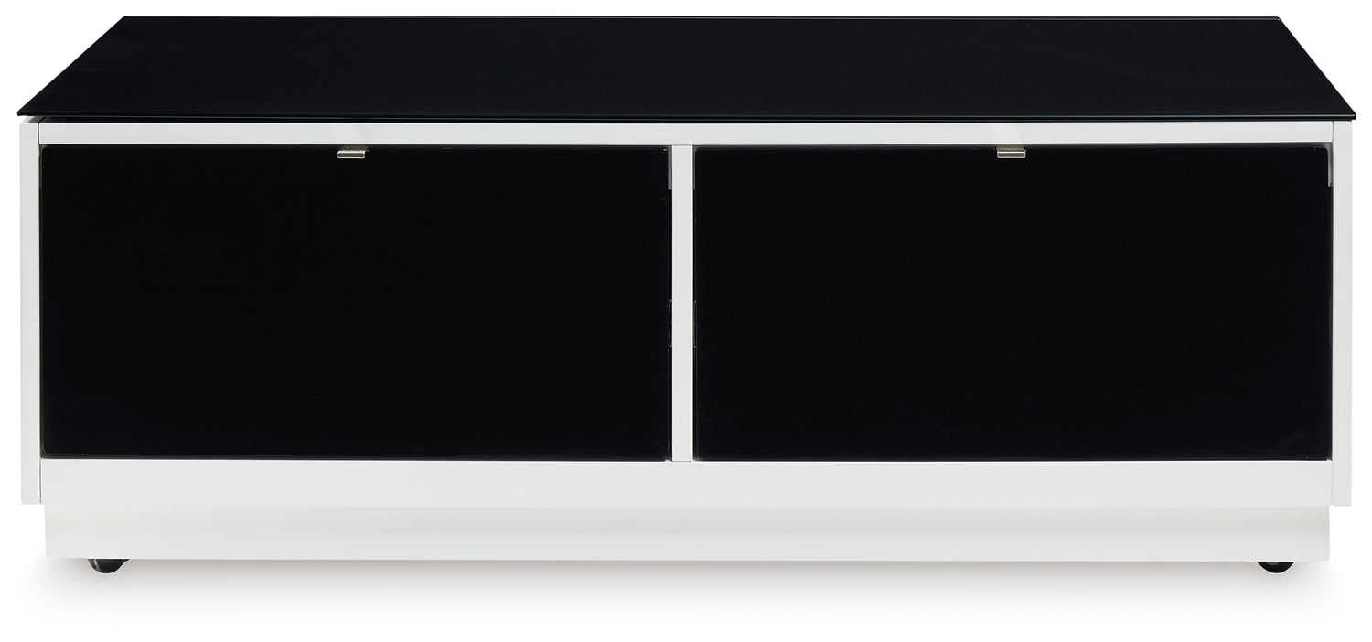 Combining a high-gloss white finish with a black glass tabletop, this occasional table package proves opposites really do attract. It's the perfect blend of modern style and functionality. With plenty of storage space, this set is a smart choice on so many levels.