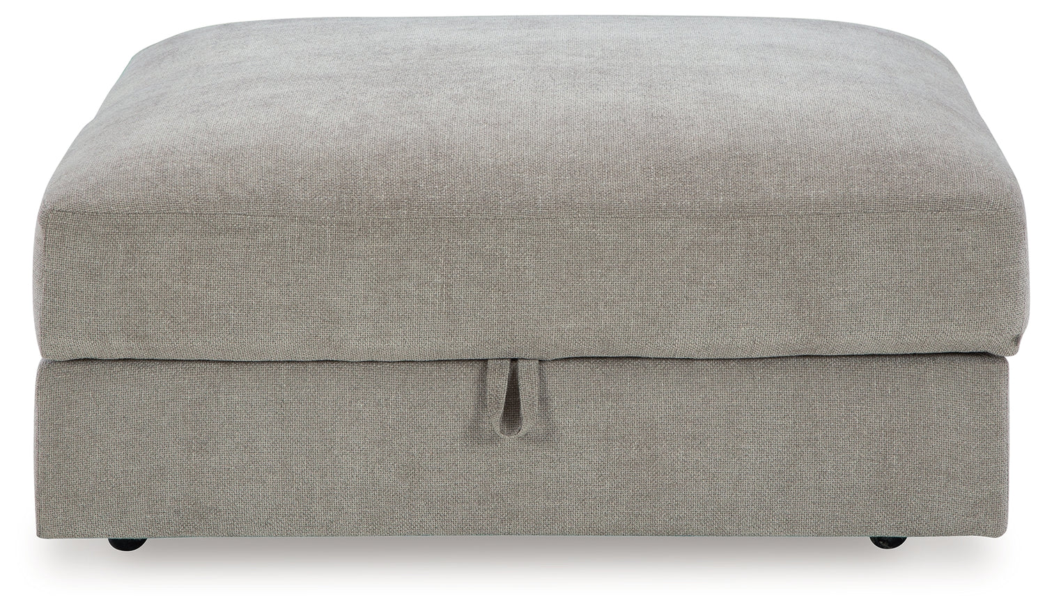 - The Oversized Accent Ottoman features locking casters, storage and gas cylinder for lid closer.