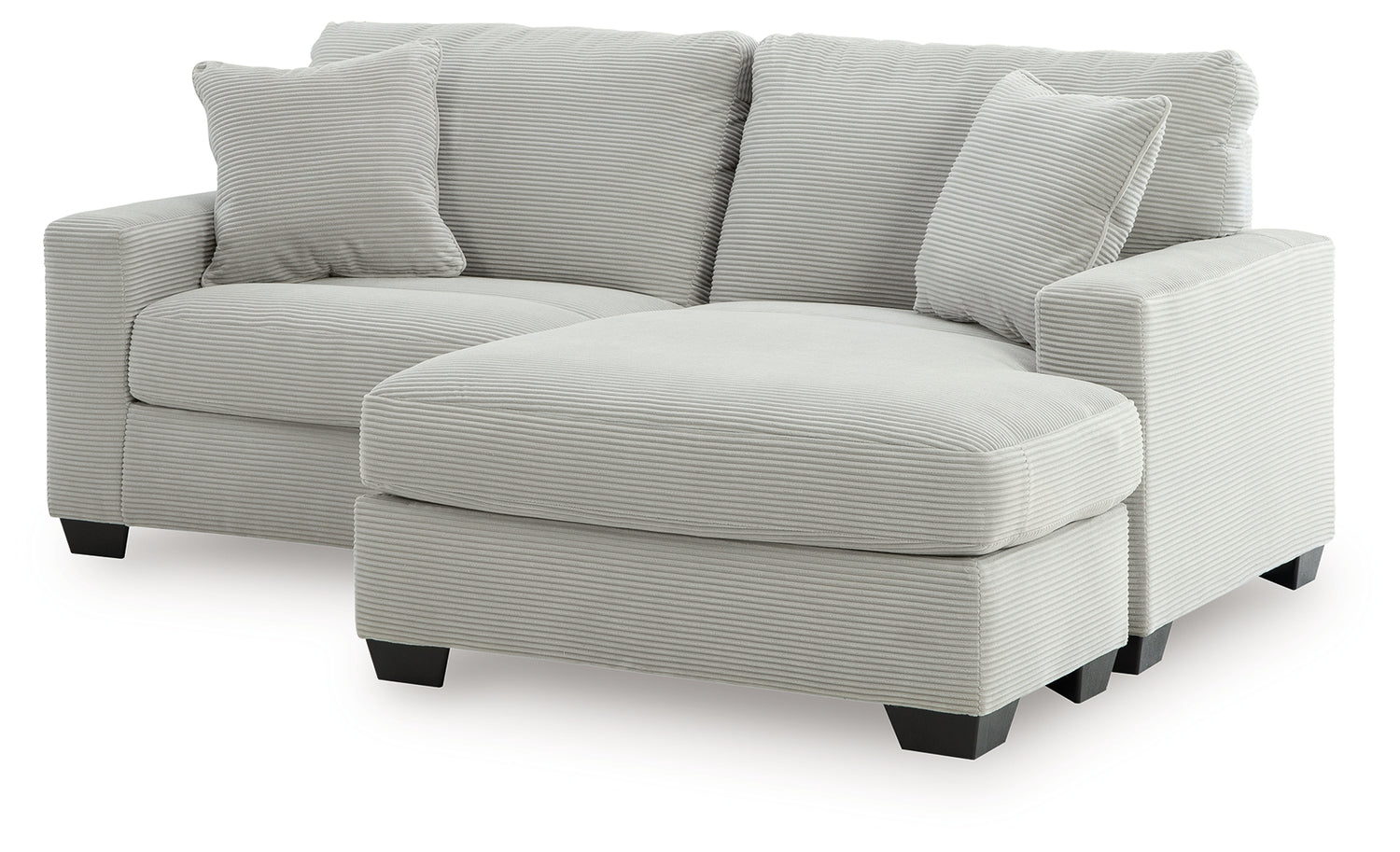 The crisp neutral hue and striking design details of this sofa chaise create a living room that expertly reflects your modern taste. For irresistibly cool textural appeal, the ultra-soft fabric is enhanced by a small-scale corded look. With a clean-lined silhouette complete with track arms, this sofa chaise allows you to take a trend-right approach to everyday living.