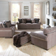 AUSTIN is a rolled arm Transitional design in a soft chenille fabric, featuring five toss pillows - and faux fur!