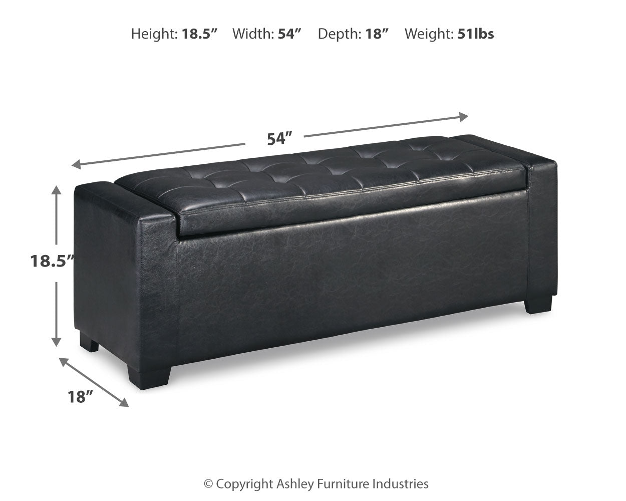 What a handsomely tailored upholstered storage bench. Black faux leather upholstery is elevated with button tufting. Lift the cushion to reveal ample storage for your pillows, throws and more.