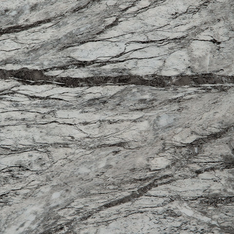 - Two-tone finish consisting of faux gray marble tops and weathered gray wood grain legs and shelf.
