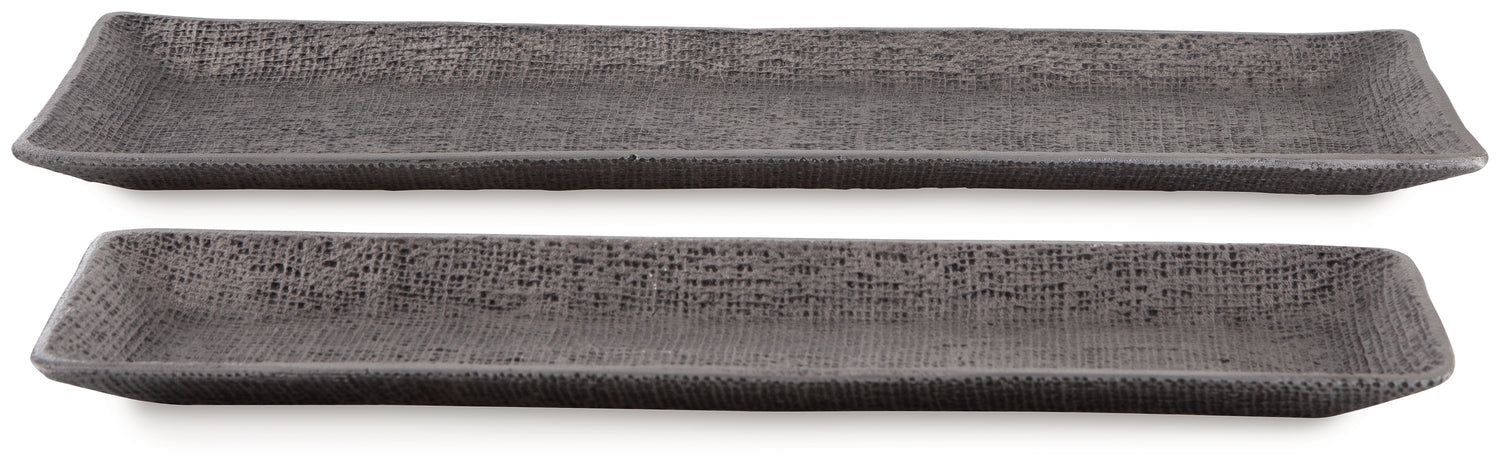 Top off tables and counters with this tray set. Searching for a casually cool catch-all option for your entryway? They keep keys and other essentials corralled. Also acting as a beautiful base for additional decorative pieces thanks to their textured surface, these trays are pioneers in fashionable function.