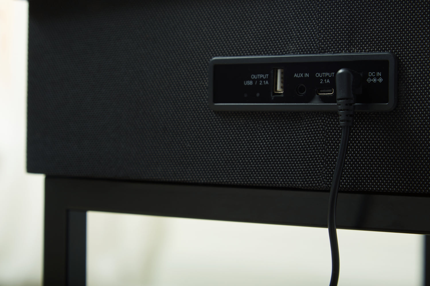From cleaning day to game night, you love crafting the perfect ambiance with music. With the Gemmet accent table’s built-in audio capabilities, setting the mood is easier than ever. Connect wirelessly to the speakers while you keep devices ready to go with wireless and USB charging options. A contemporary design in a sleek black keeps the piece as fashionable as it is functional.