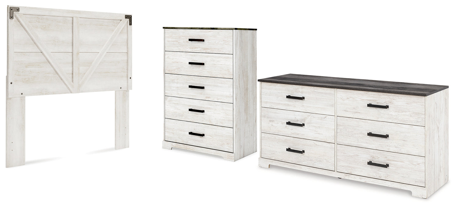 Shawburn 3-Piece Queen Panel Headboard with Dresser and Chest (Queen Crossbuck Panel Headboard, Dresser, Chest of Drawers)
