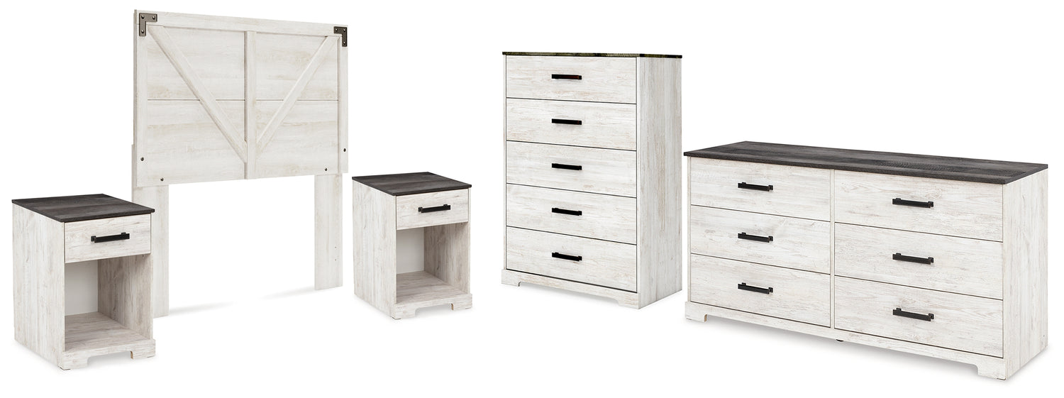 Shawburn 5-Piece Full Panel Headboard with Dresser, Chest and 2 Nightstands (Full Crossbuck Panel Headboard, Dresser, Chest of Drawers, Nightstand, Nightstand)