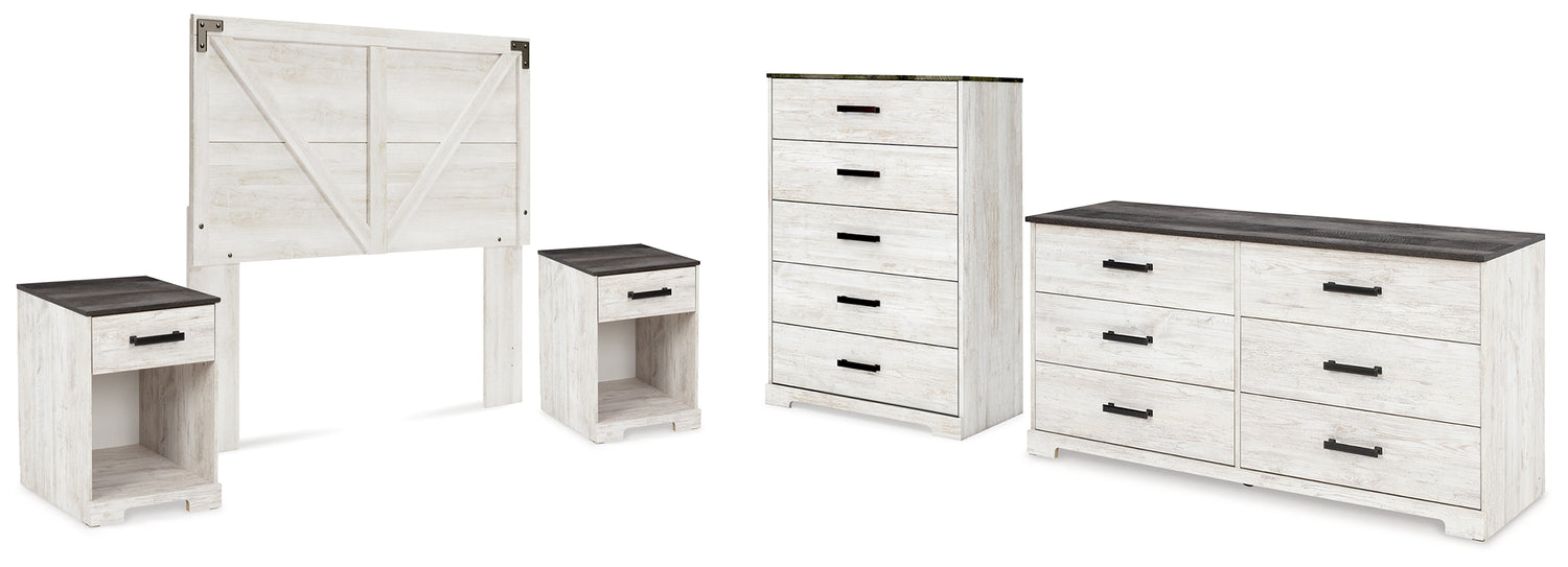 Shawburn 5-Piece Queen Panel Headboard with Dresser, Chest and 2 Nightstands (Queen Crossbuck Panel Headboard, Dresser, Chest of Drawers, Nightstand, Nightstand)