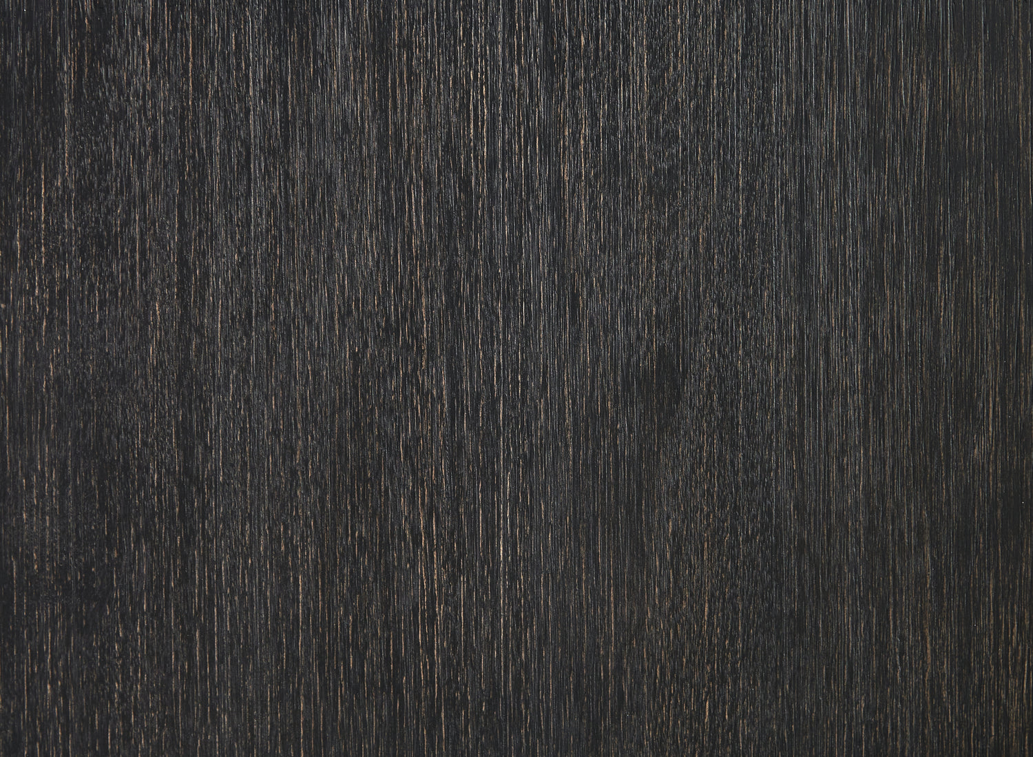 - Unique two-tone finish with a combination of Oak and Acacia substrates combining a trendy textured antique black color with table and server tops finished in a textural weathered oak finish.